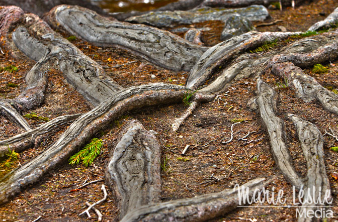 By all means, take the picture that shows off the panorama. And then look down at your feet and photograph the cool, interlocking pattern of tree roots on the forest floor.